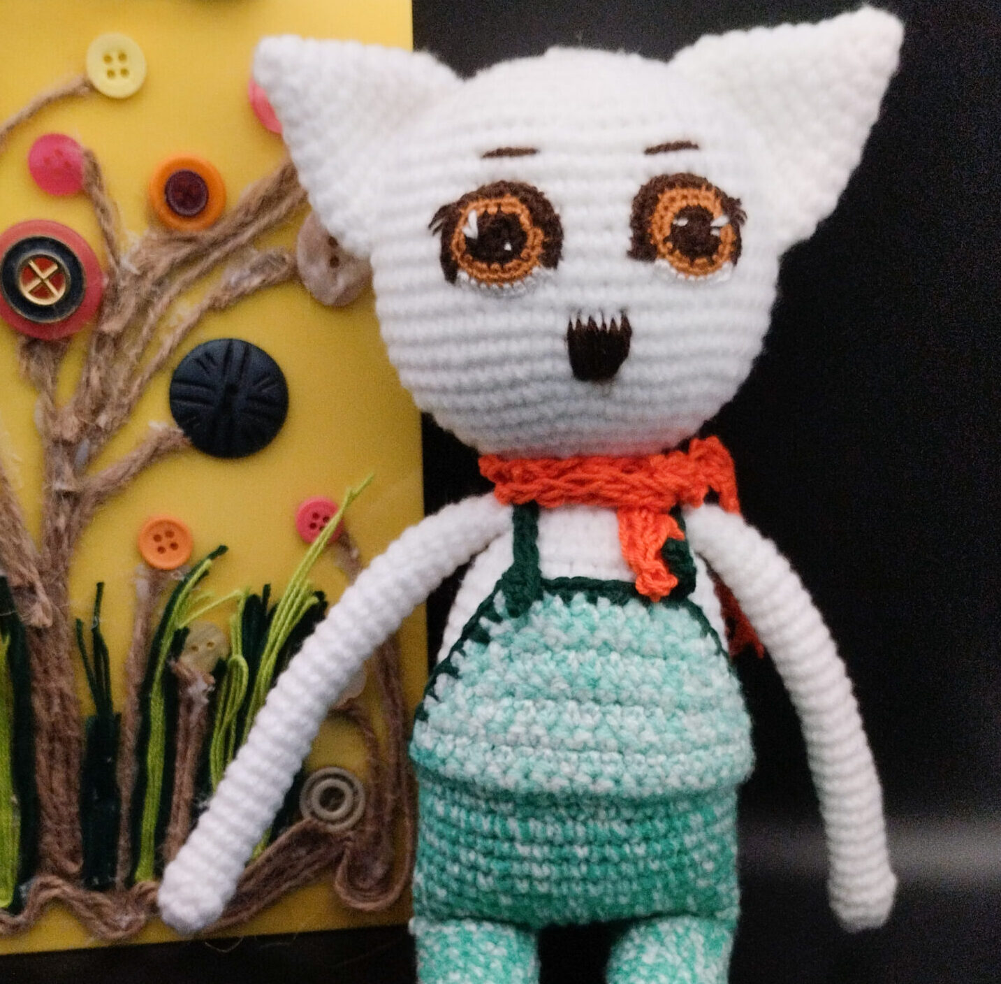 Doudou Koko, le petit chat aux couleurs vives, t’attend pour des journées enjouées, remplie de drôleries. Crocheté avec du fil synthétique et coton. Doudou rembourré avec de la ouate. Pièce unique. Entretien facile.